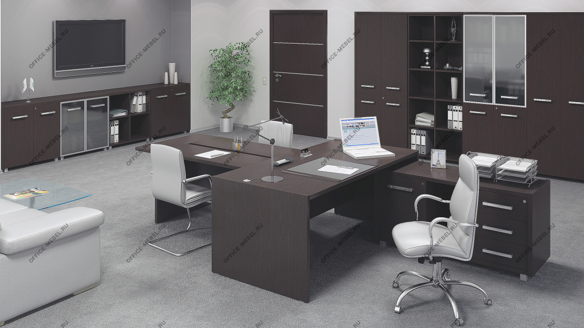 Модульная конструкция мебельной серии Дипломат, раскрывает перед вами широкую вариативность меблировки своего кабинета. Рабочие столы можно комбинировать с несколькими видами приставок и тумб. Все шкафы серии можно объединять при помощи боковин и топов, создавая объемные архивные шкафные группы для хранения документов. Все элементы серии Дипломат представлены в двух цветовых вариациях: выбеленный дуб и дуб венге. Мебель изготовлена из высококачественного ламинированного ДСП. Нейтральный дизайн позволяет использовать данную мебель практически с любыми дизайн проектами.