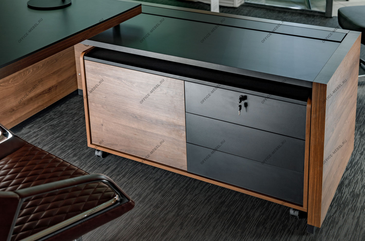 Конструкция элементов доведена до скульптурной четкости. Дизайн функционально обоснован и лаконичен. Прямые линии, массивные формы и интересные детали привнесут эстетику и значительность в интерьер вашего офиса.