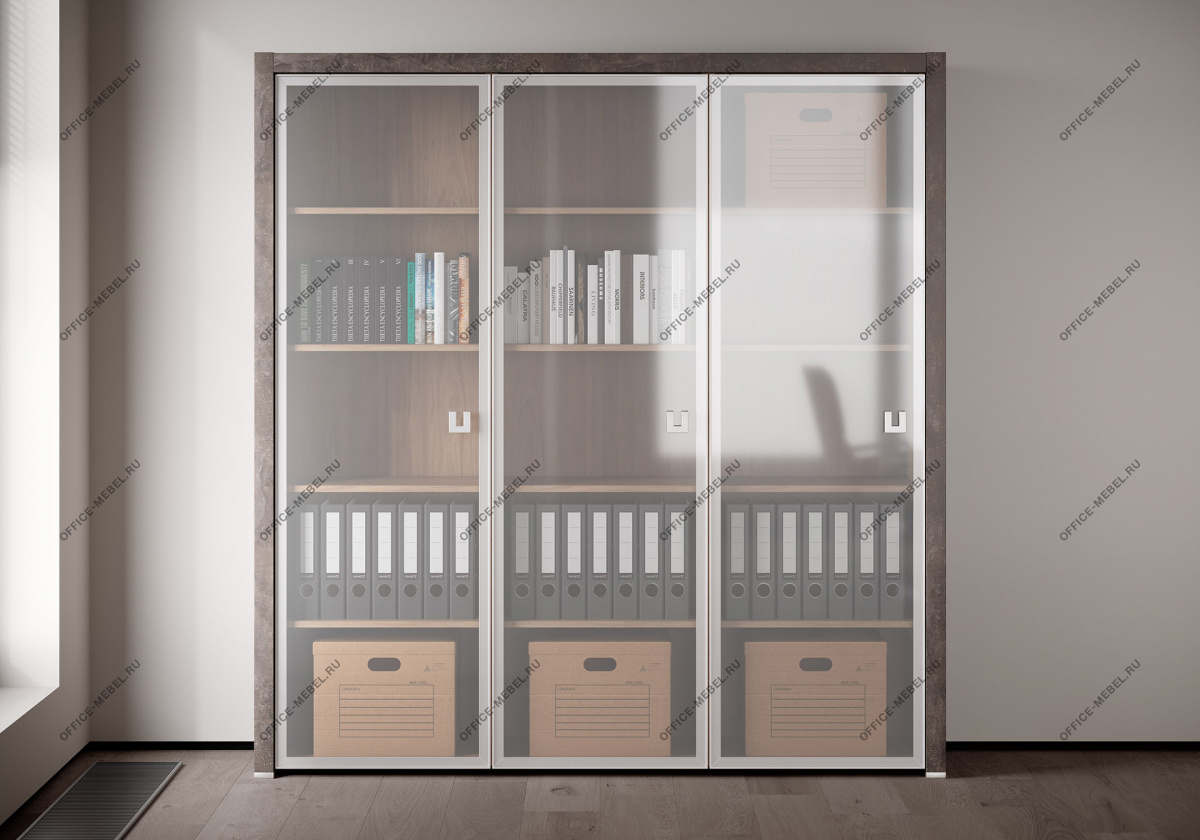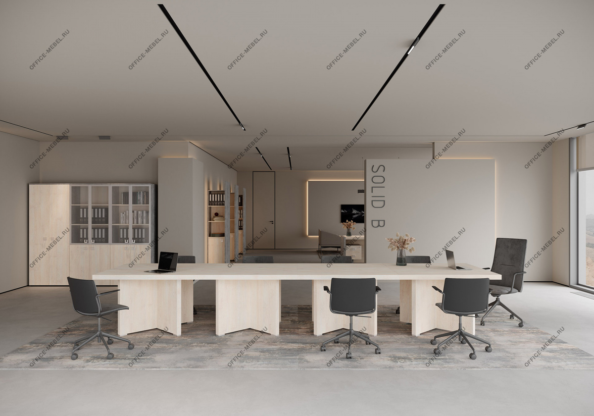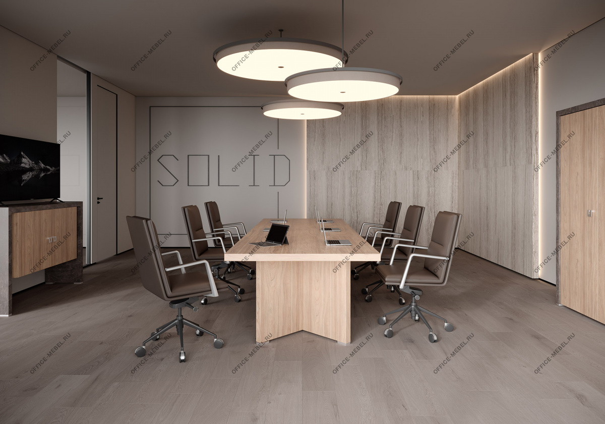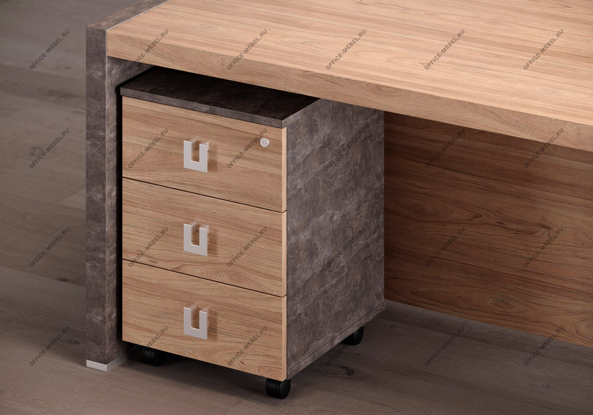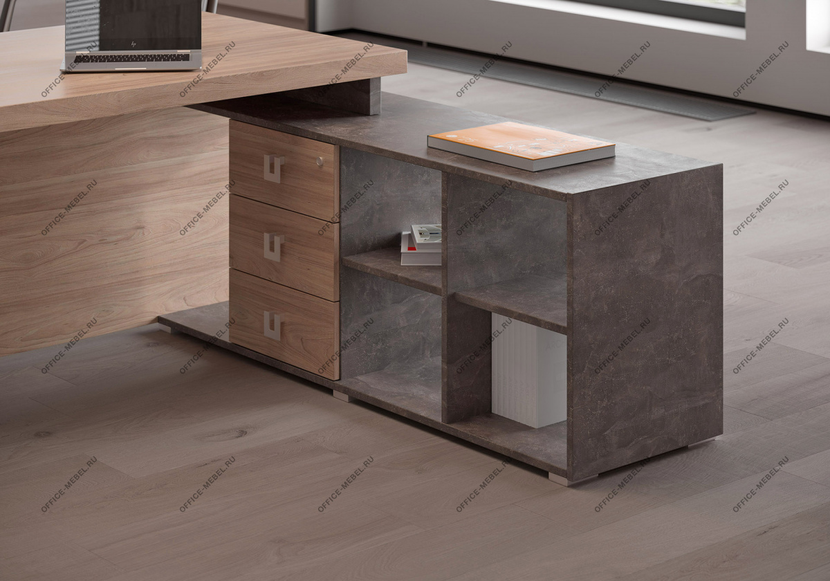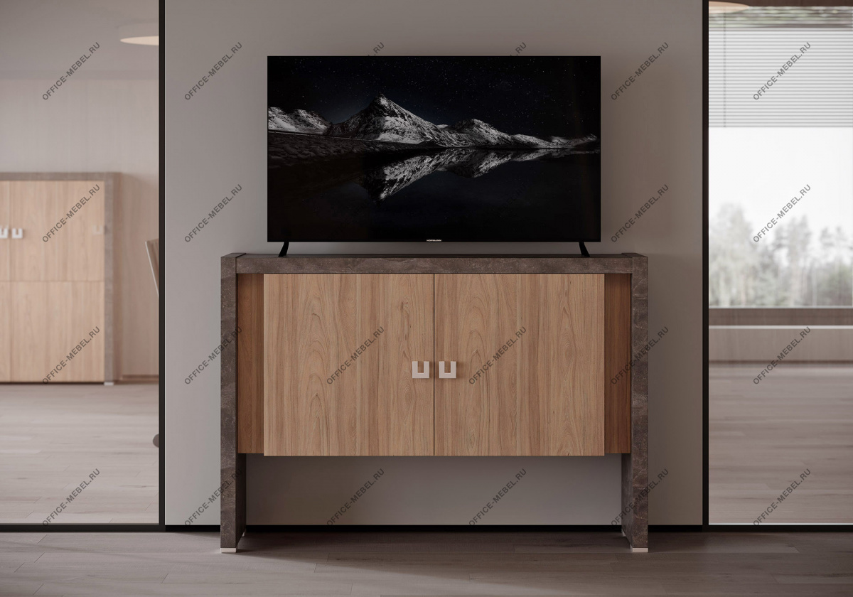 Вариант 1: Вяз (натуральный оттенок дерева) в сочетании с темным бетоном — создает контрастный, индустриальный вид, идеальный для динамичных офисов.