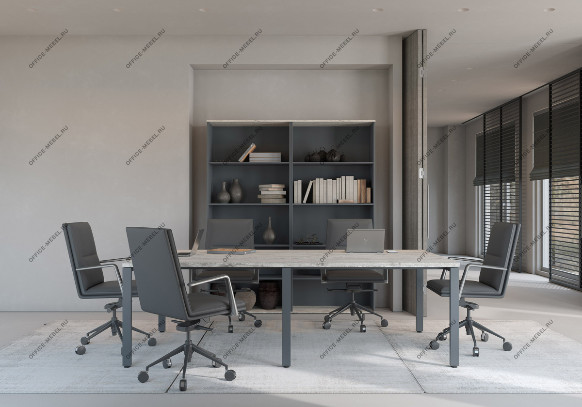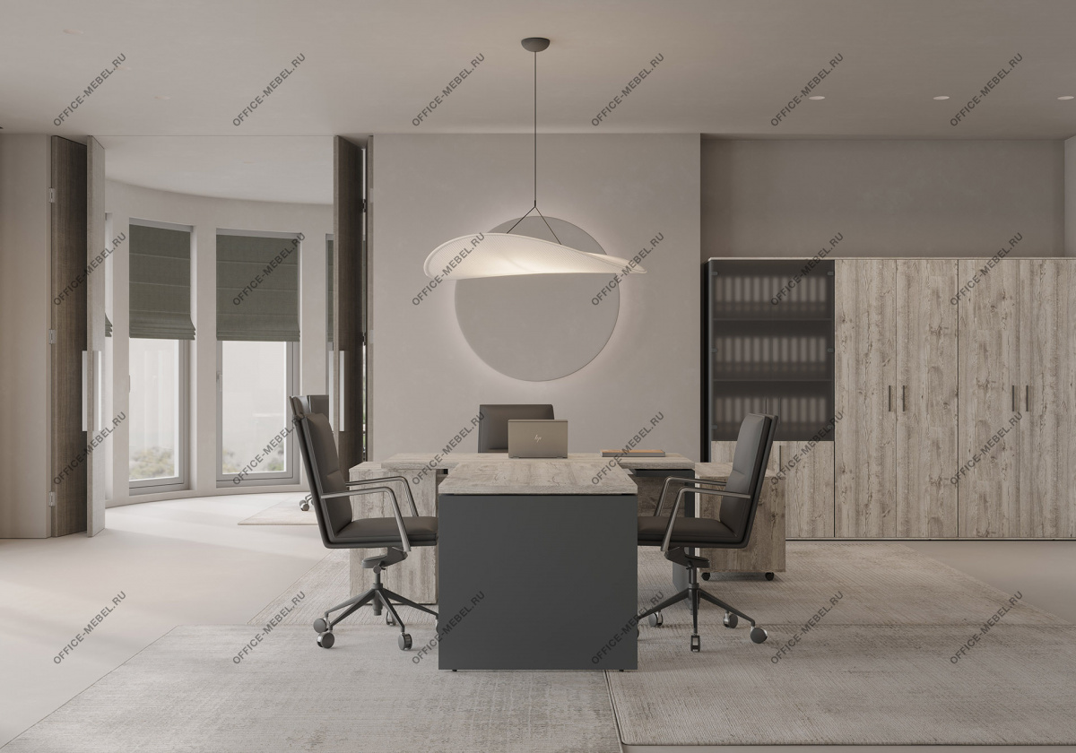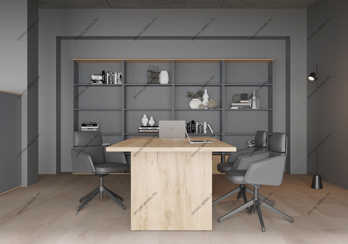Концепция и стиль: современный офис в индустриальном стиле; акценты из серо-металлических элементов и тёплой древесной фактуры