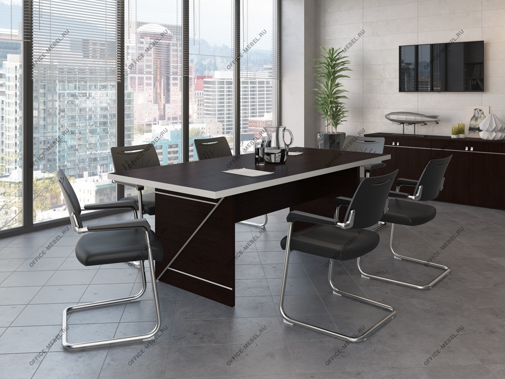 Серия мебели Zoom узнается с первого взгляда благодаря фирменному дизайну опор. Панели ЛДСП смещены относительно плоскостей друг друга и образуют латинскую букву Z. Ппереговорный стол Zoom является продолжением одноименной серии руководительской мебели Zoom, что очень удобно если вы хотите оформить свой офис в едином стиле. Это качественная и надежная мебель, с высоким показателем устойчивости к интенсивному режиму использования. Стоит отметить приятное соотношение цены и качества.