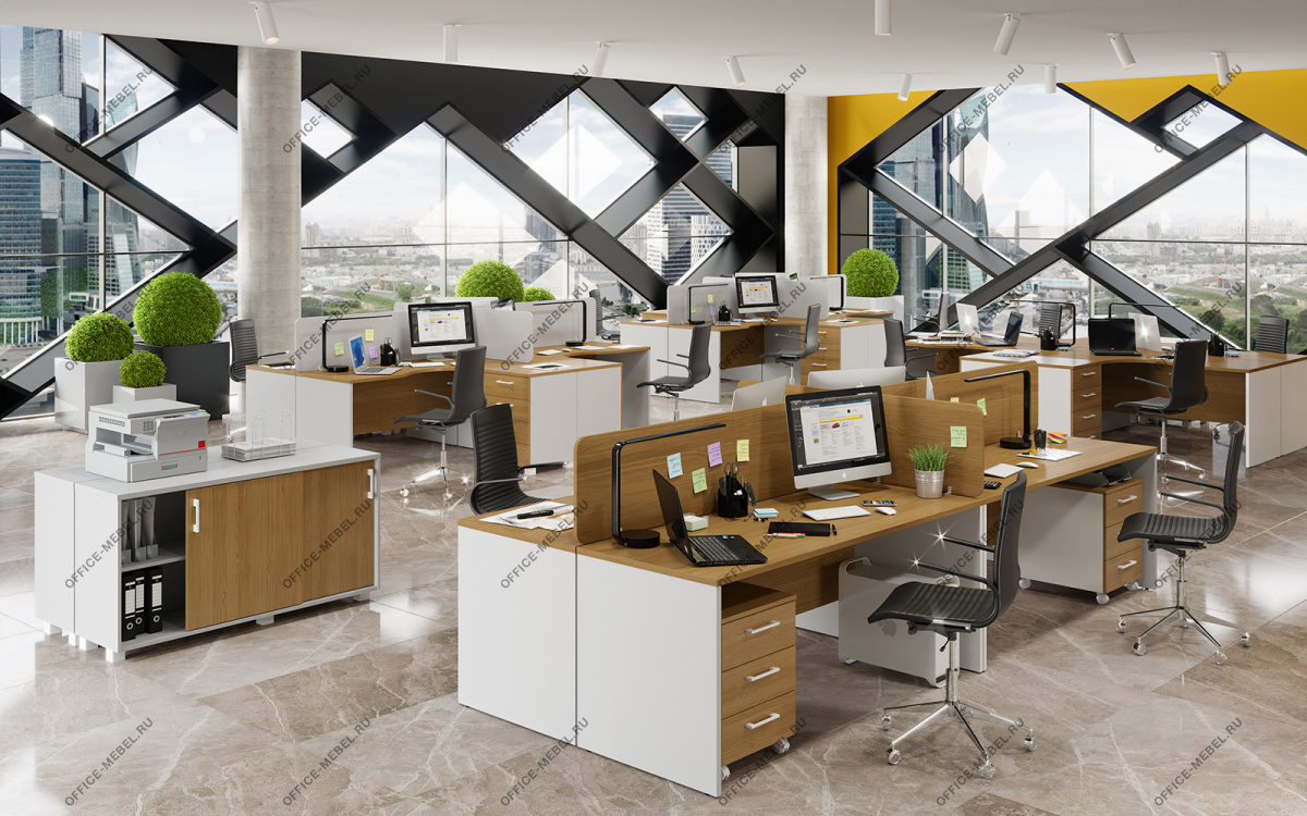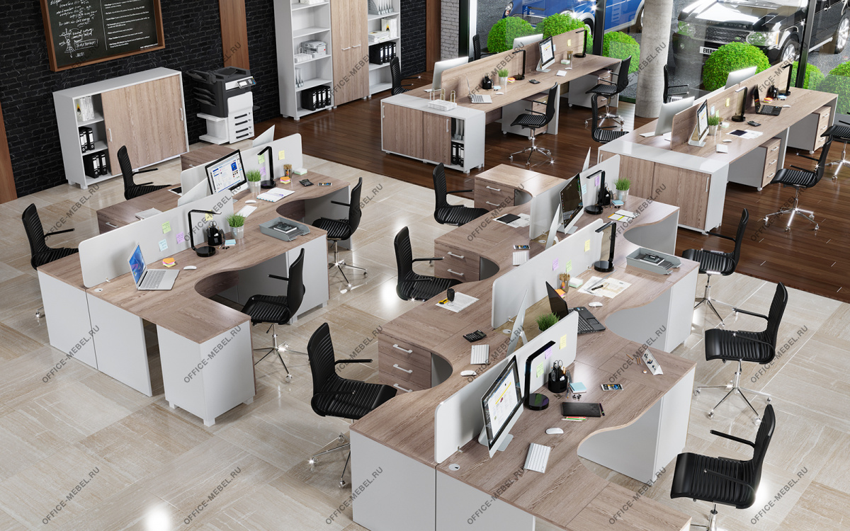 Топ выкатной тумбы, каркасы тумб, фасады тумб и шкафов, перегородки – ЛДСП 18 мм, кромка ПВХ 1 мм.