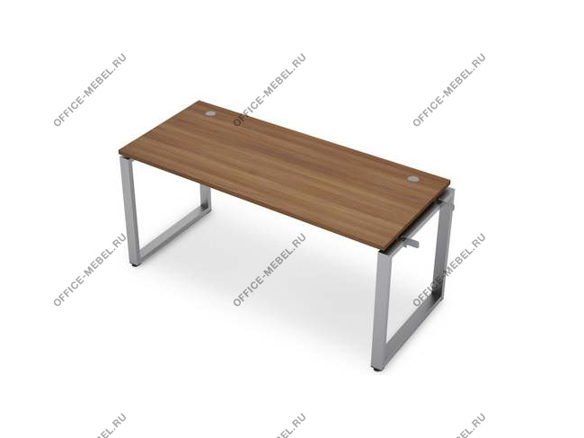 Стол на металлокаркасе с сечением 60х30, «парящий» эффект. Покрытие опор может быть выполнено в различных вариантах: алюминий матовый, белый, черный, графит, черный глянец, tabaco, klever. В столешнице предусмотрены отверстия (заглушки) - 2шт. Просвет между столешницей и опорой 16 мм.