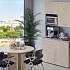 Столешница лдсп 25мм, остальное дсп 18мм. Торцы обработаны кромкой 2 и 0,4мм. Элементы наполнения левых и правых секций идентичны и взаимозаменяемы. Фасады антресоли накладные, фасады тумбы накладные и вкладные под столешницу в кромке 2мм. Устанавливаемые полки, с жестким креплением на рафиксы, являются съемными, перфорация на стойках под полки с шагом 64мм. Тумба устанавливается на регулируемые опоры - "Американка", Н=27мм В фартуке установлены 2 заглушки на кабель-канал. Задняя стенка антресоли и тумбы - хдф 3мм в паз. Задняя стенка открытой ниши (фартук) - ЛДСП 18мм. Направляющие ящиков - роликовые.