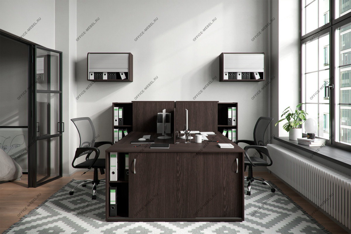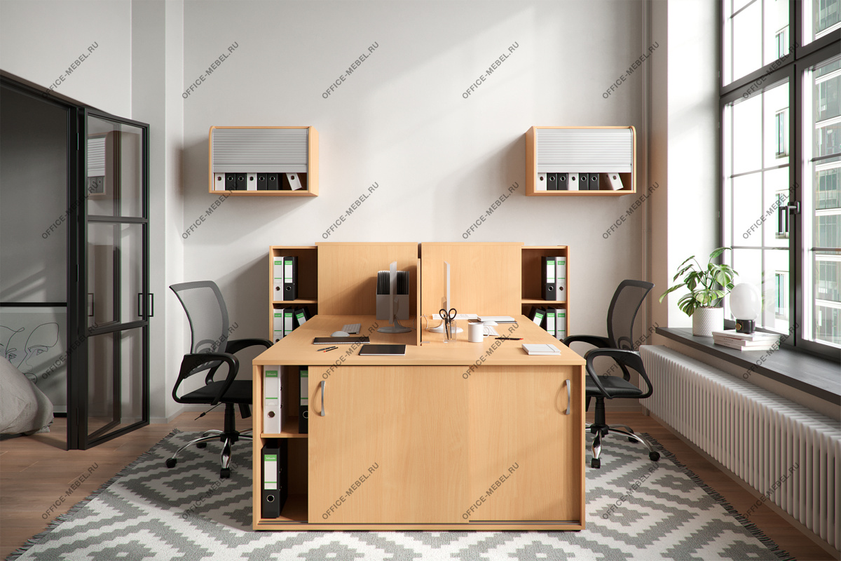 Серия мебели для офиса Партнер примечательна своей универсальностью т.к. может быть использована как для меблировки индивидуальных рабочих мест, так и для групповых рабочих станций. Вся мебель серии доступна в семи цветовых вариациях, что позволяет легко комбинировать ее с различными интерьерами. Мебель для офиса Партнер изготавливается из ДСП с покрытием из меламина. Это крепкий и неприхотливый материал, который не требует тщательного ухода и хорошо переносит интенсивный режим использования.